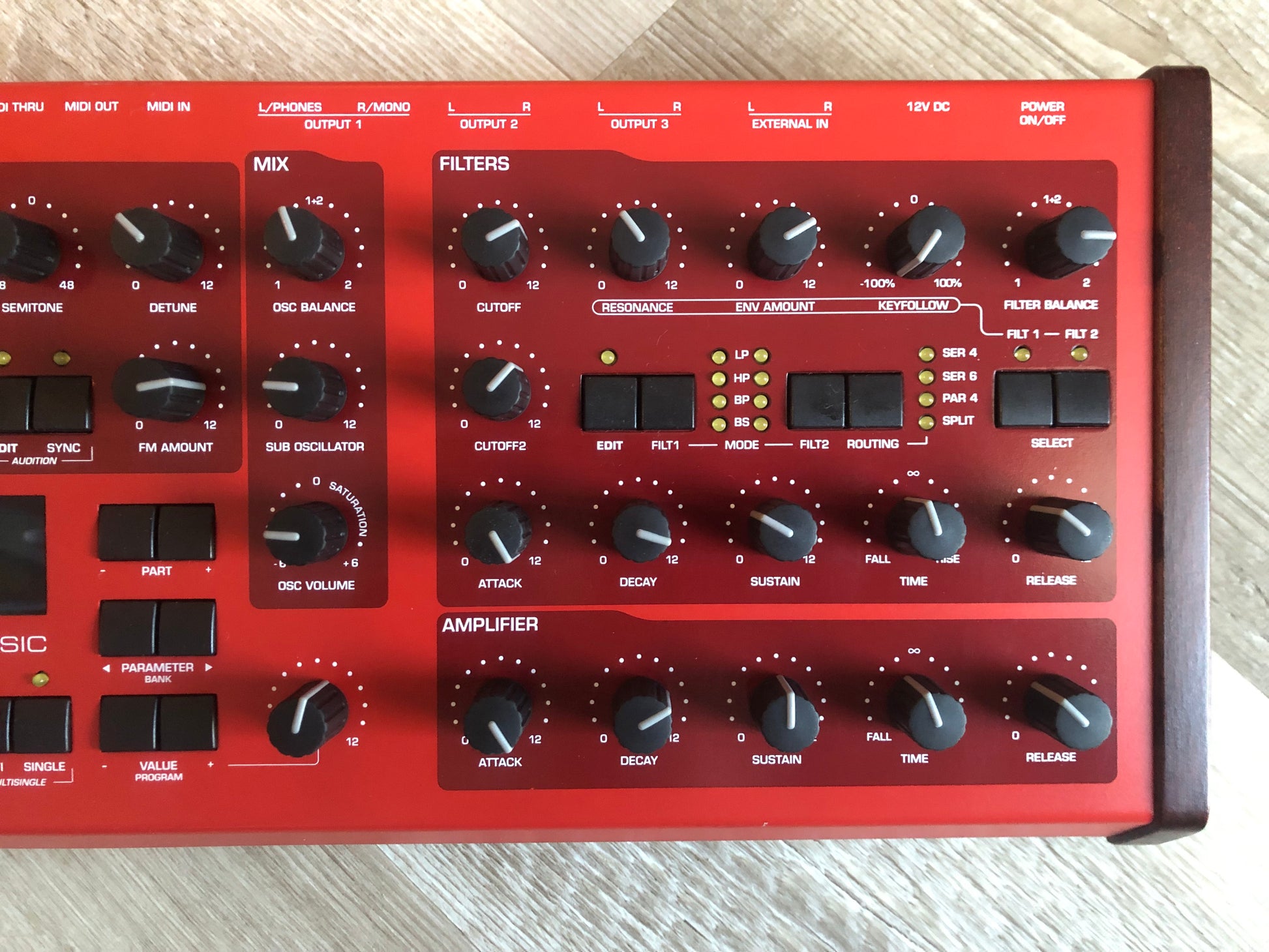 - Oscillators: 2 main plus sub per voice, optional 3rd oscillator
