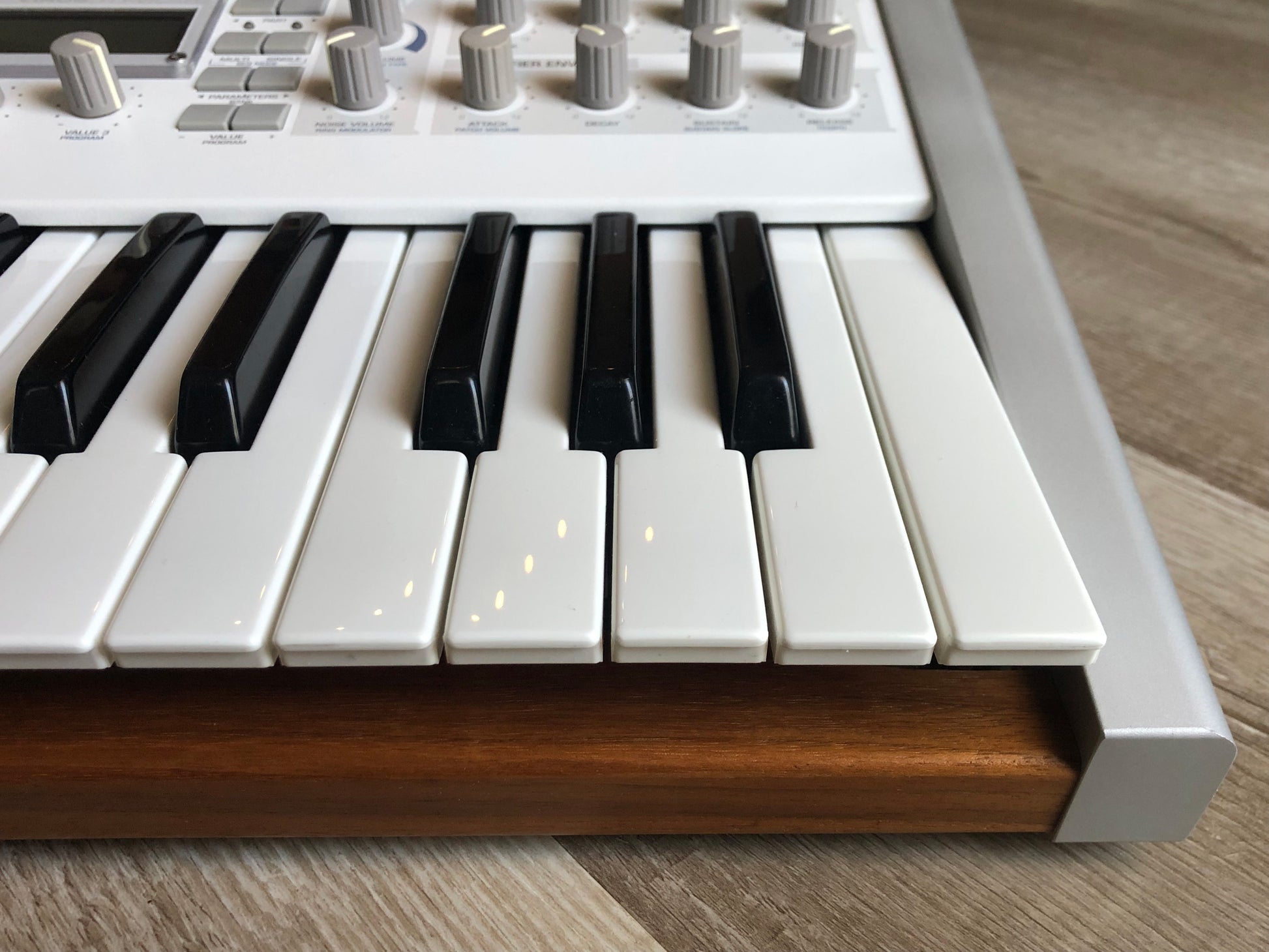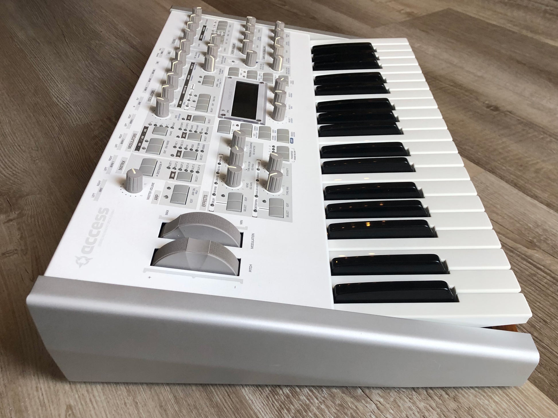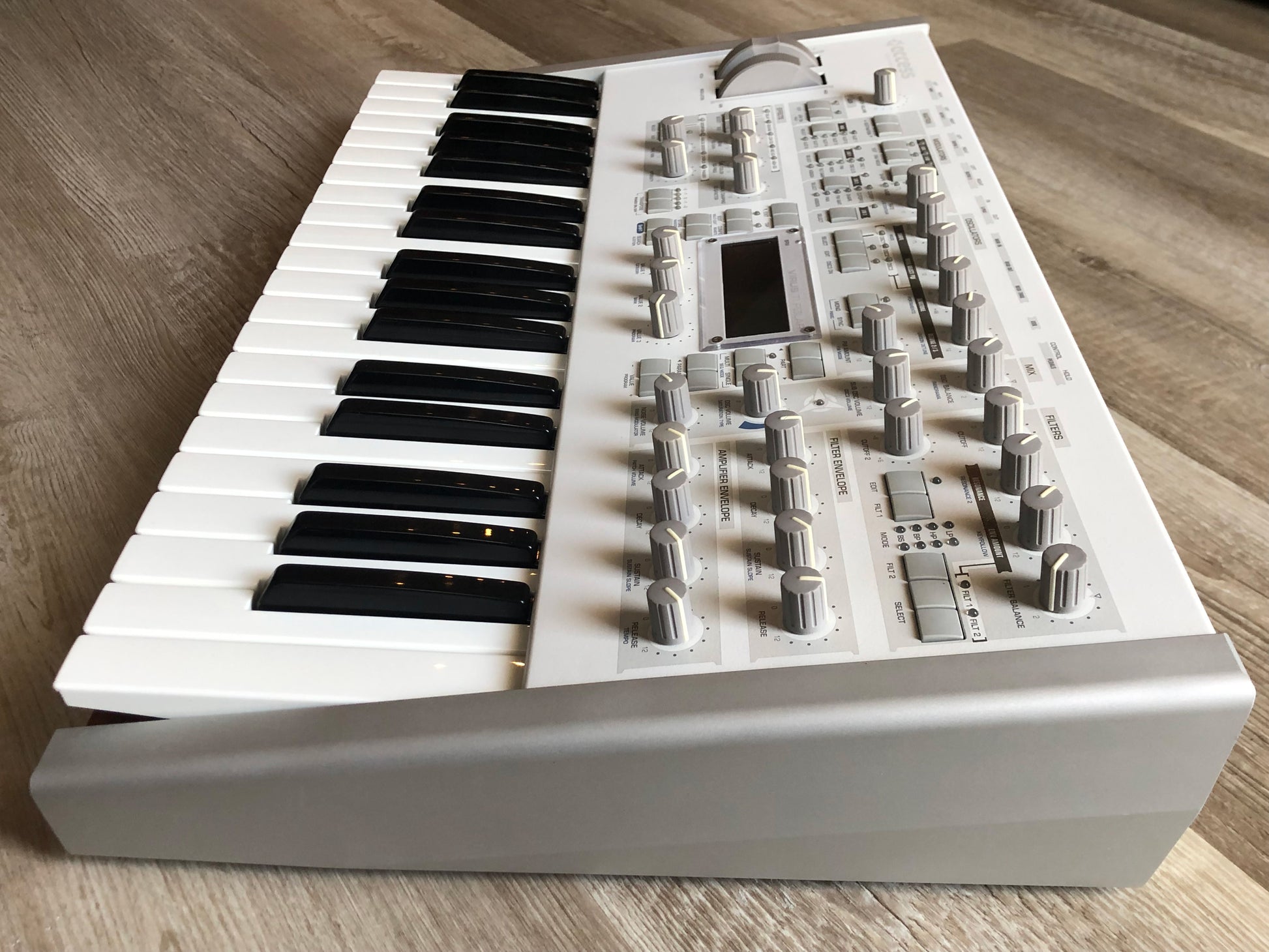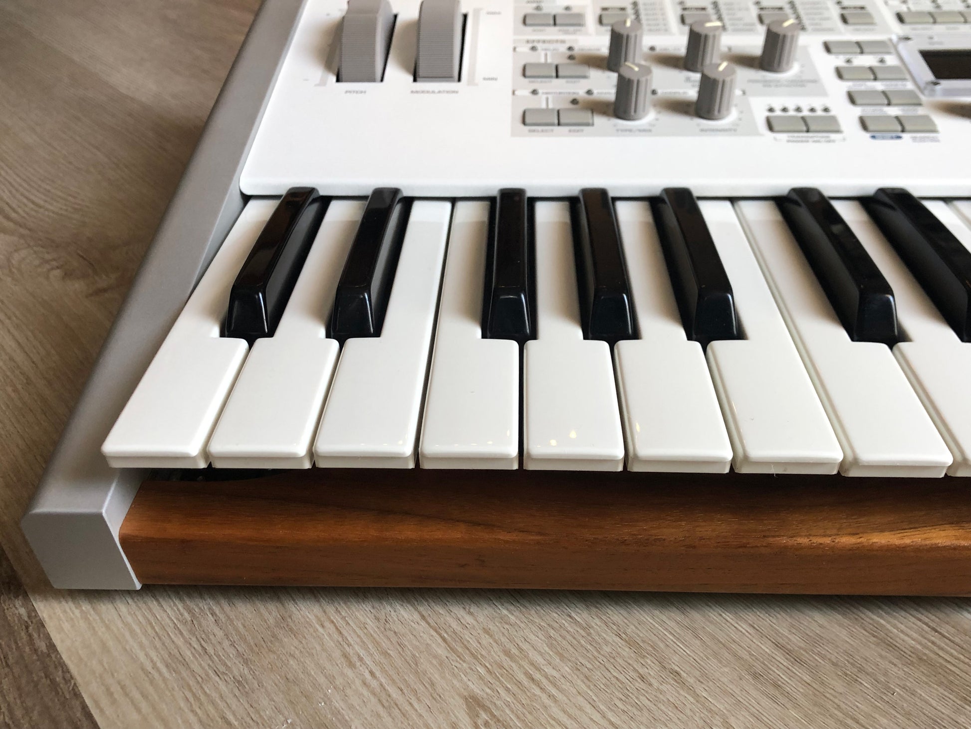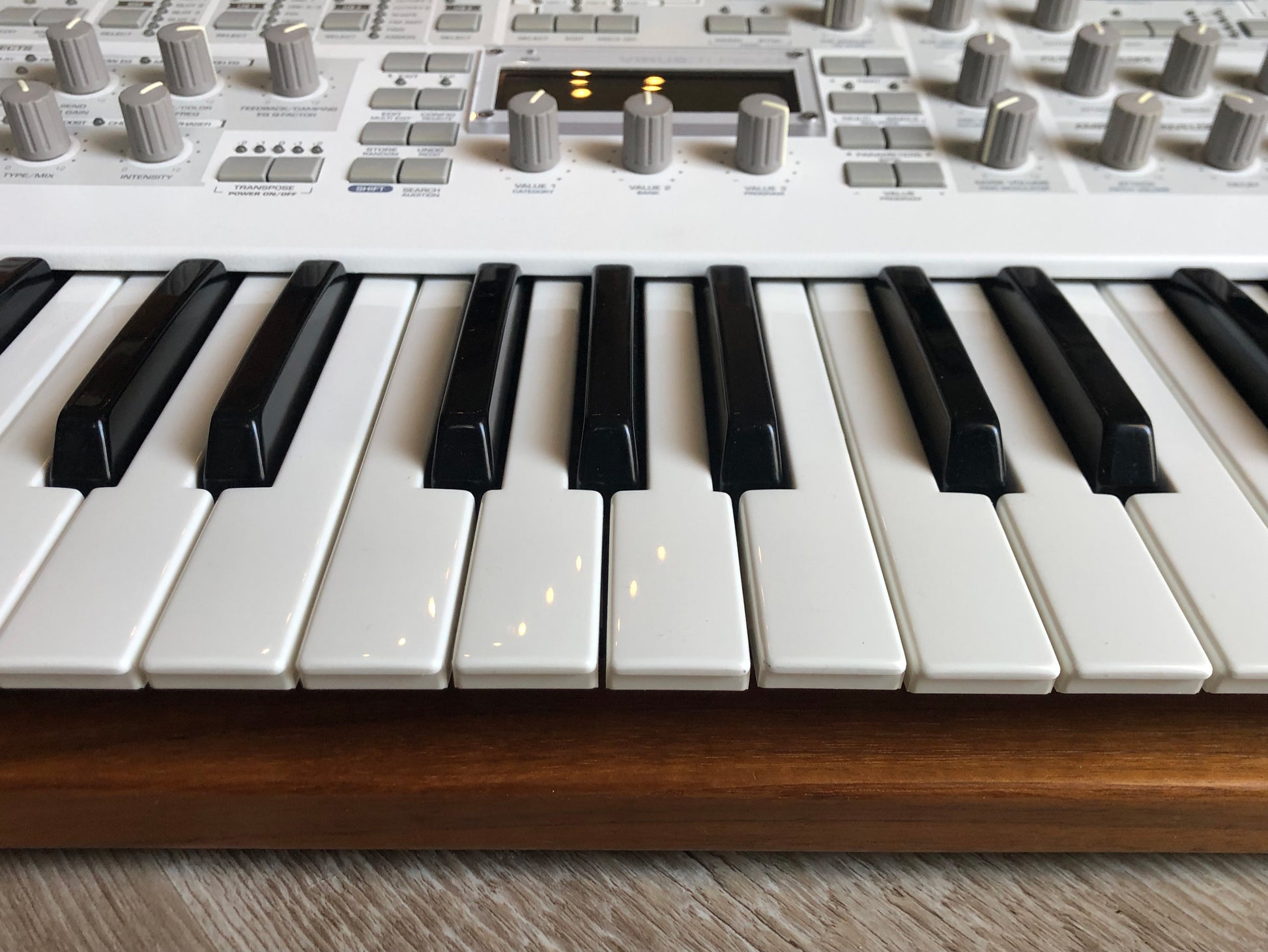 - Physical Design: 37-key Polar edition in white chassis with wooden end panels; approx. 678 × 358 × 133 mm; ~10.5 kg