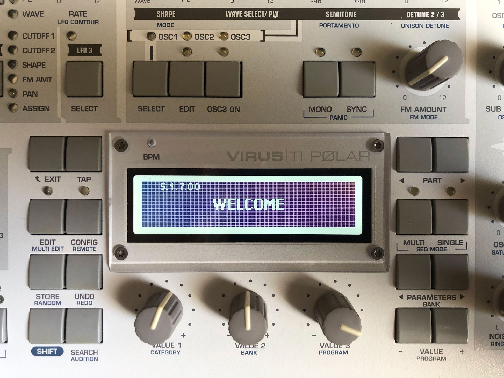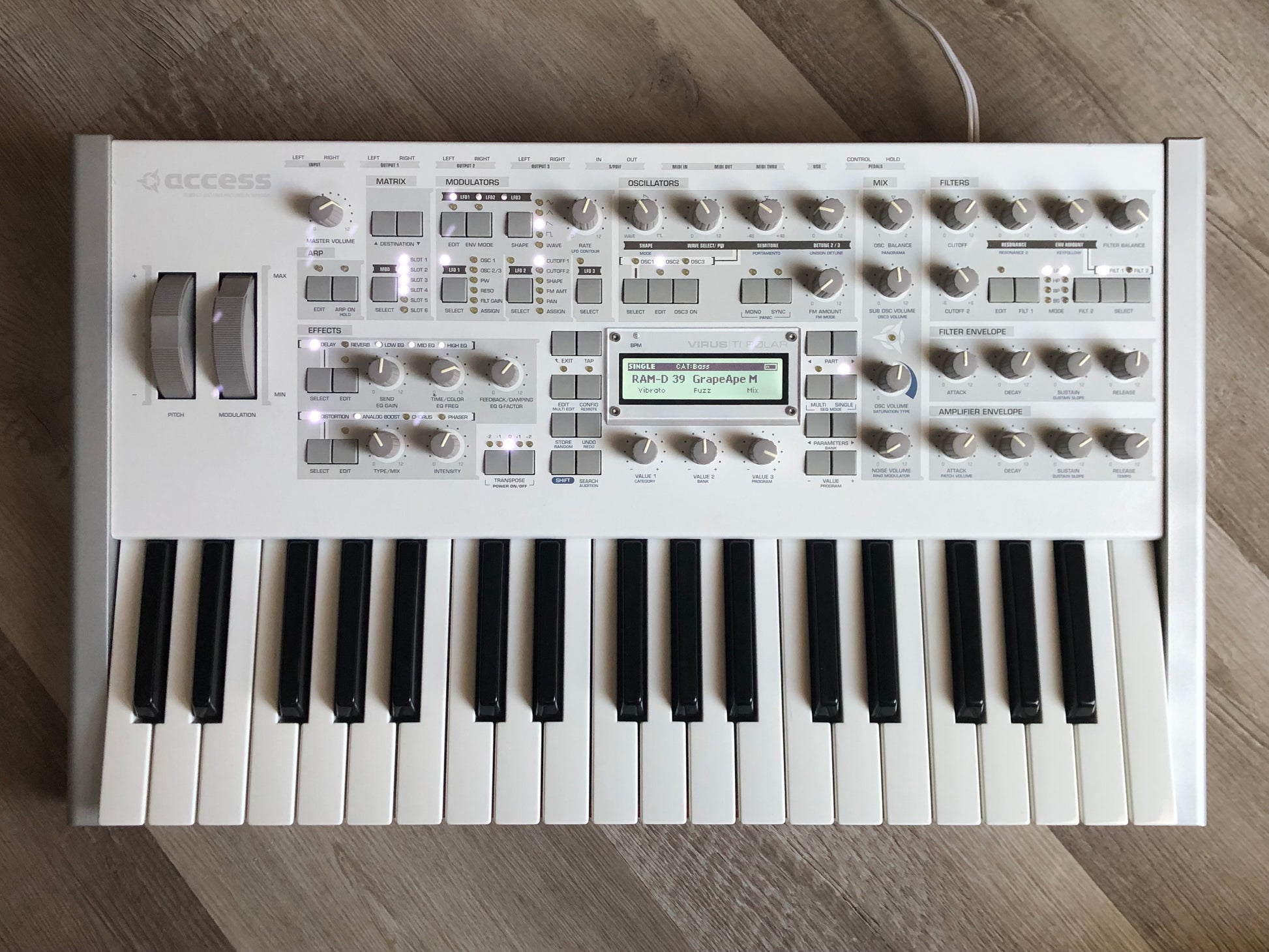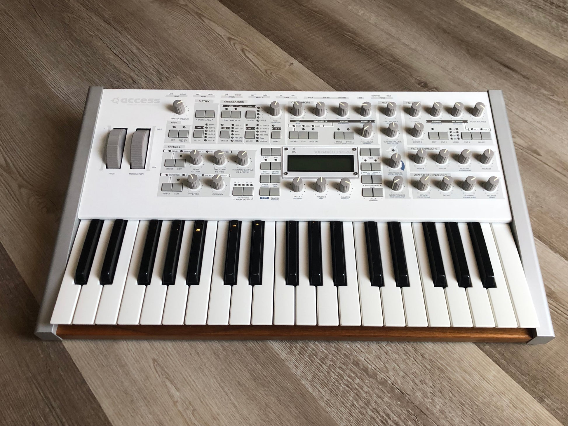 SOLD: Access Virus TI Polar Synthesizer. This unit is in perfect functioning condition and excellent cosmetic condition with just a few minor blemishes. Details below:
