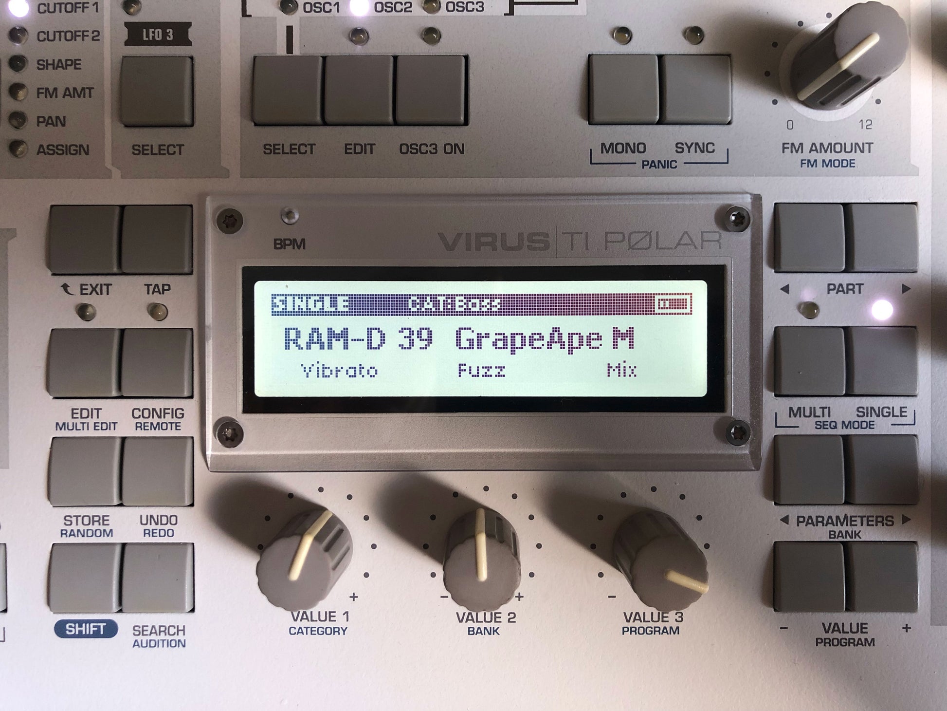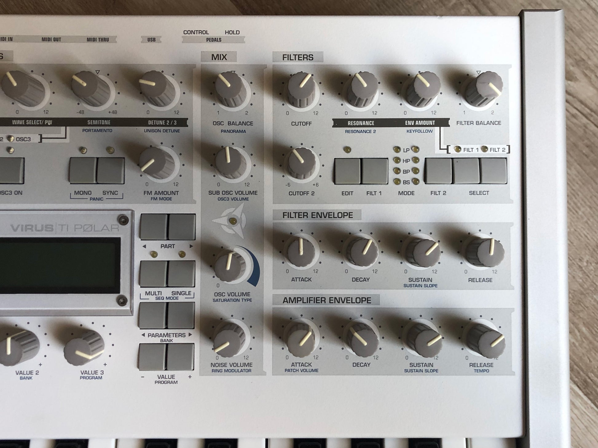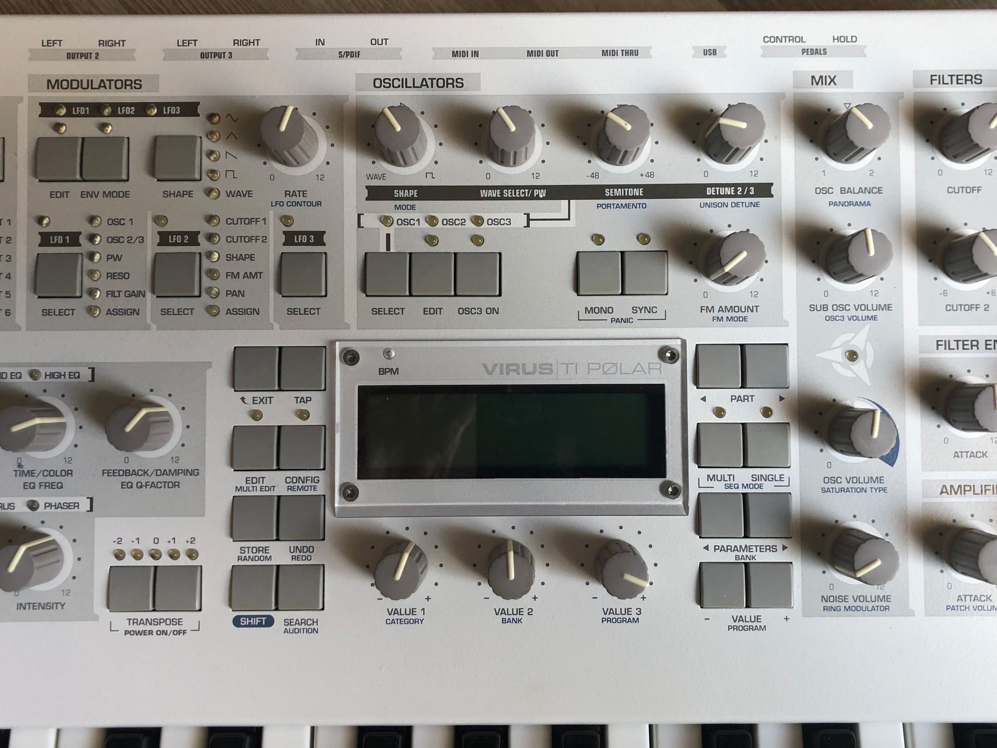 SOLD: Access Virus TI Polar Synthesizer. This unit is in perfect functioning condition and excellent cosmetic condition with just a few minor blemishes. Details below: