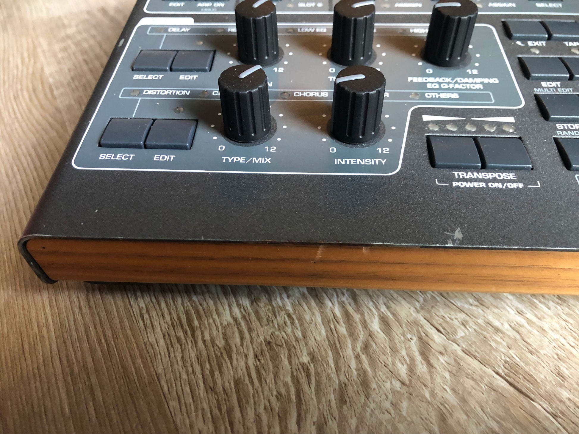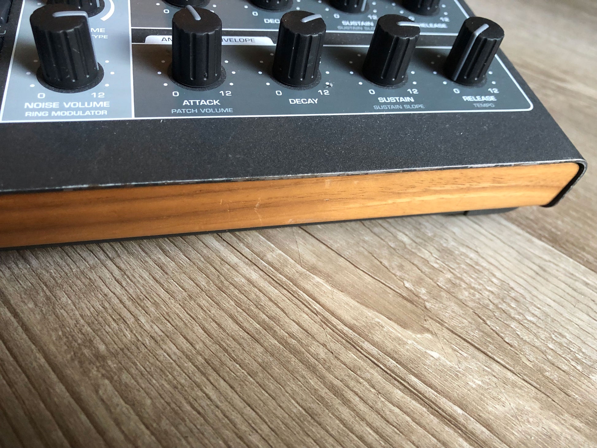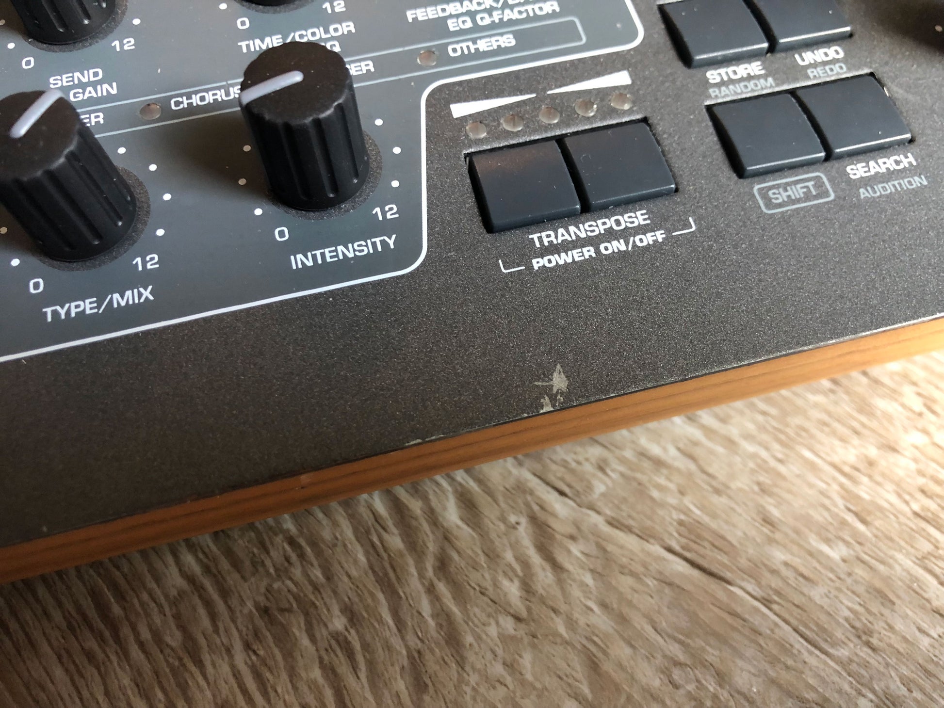 There are a number of scratches and imperfections in the finish on this synth. Please examine all photos carefully. While it looks great overall, we want to make sure we fully disclose. See photos 17-23.
