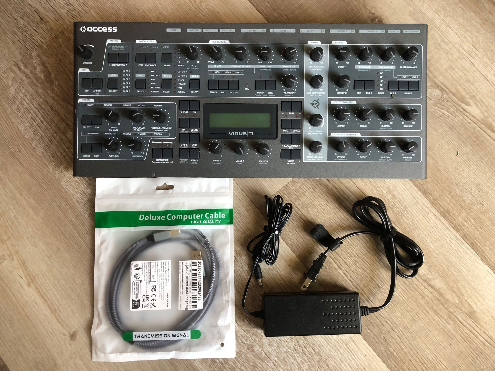 Sale includes the synth, 12v 3.0A power supply, and a new high-quality 6 ft USB cable.
