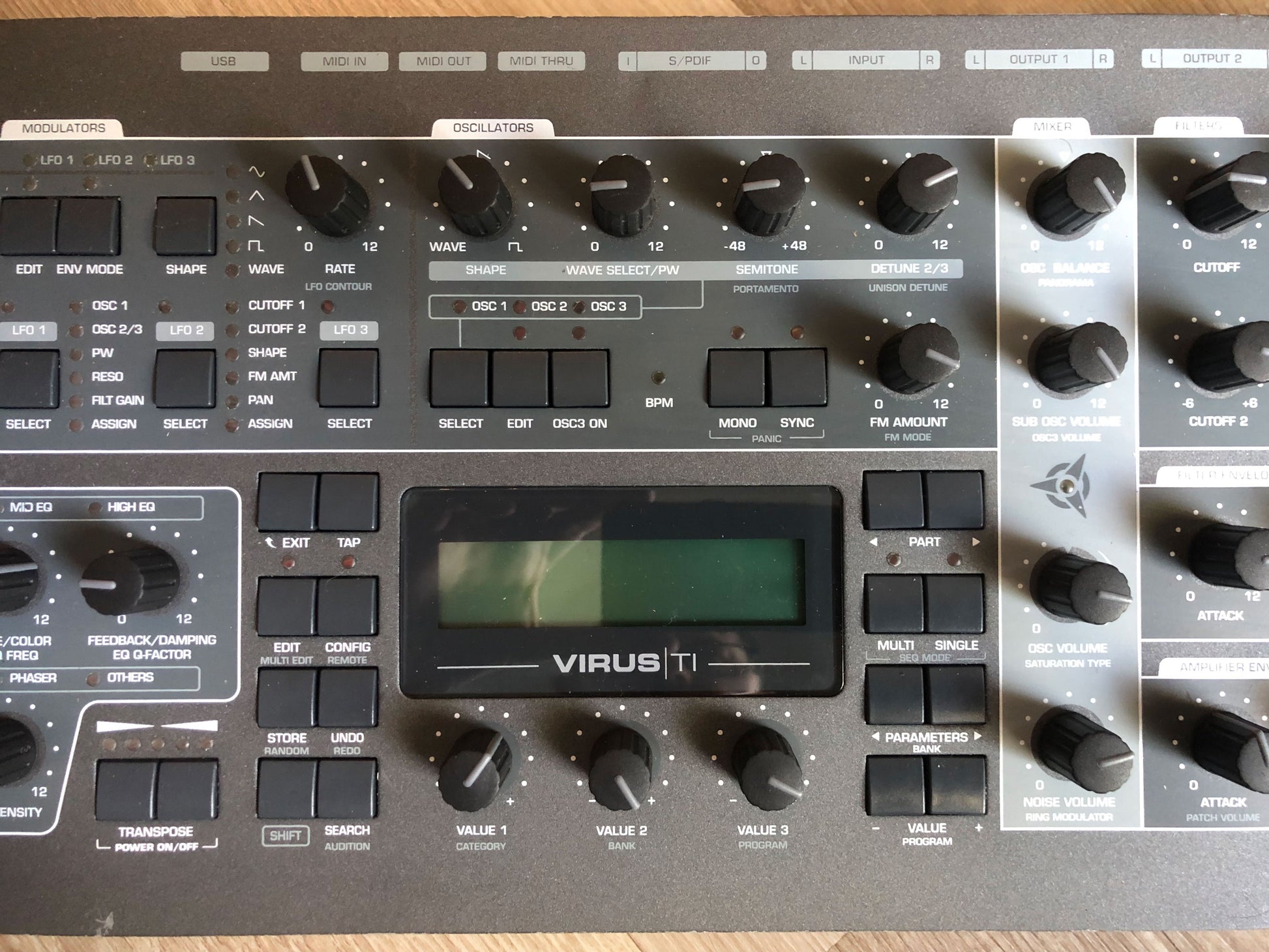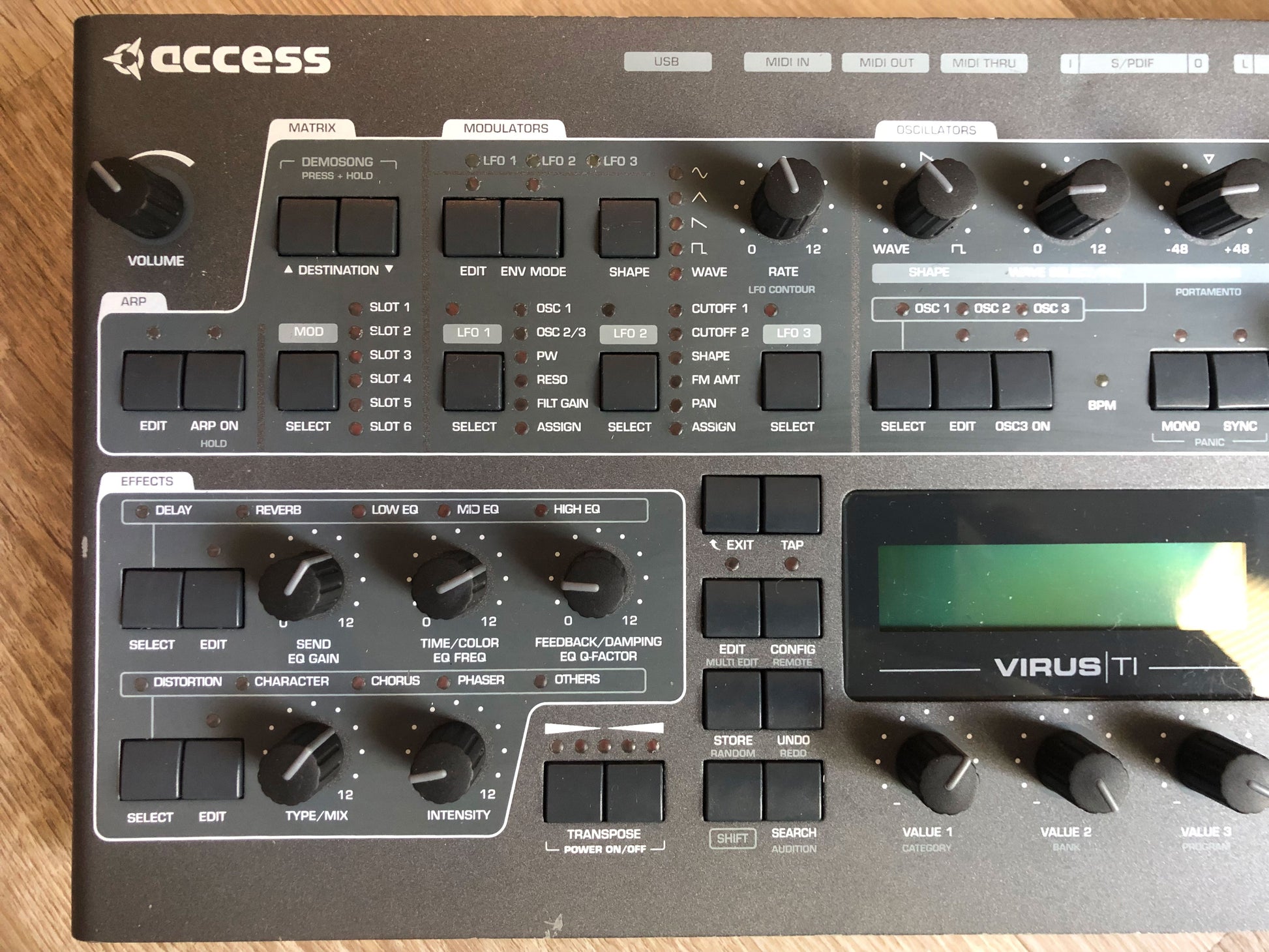 Sold: Access Virus TI2 Desktop in good condition. This unit was rescued from a pawn shop in Las Vegas. It had no knobs and a few other issues to sort out, but has now been fully prepared for a second life. Functionally, it's 100%, but there are some cosmetic issues.