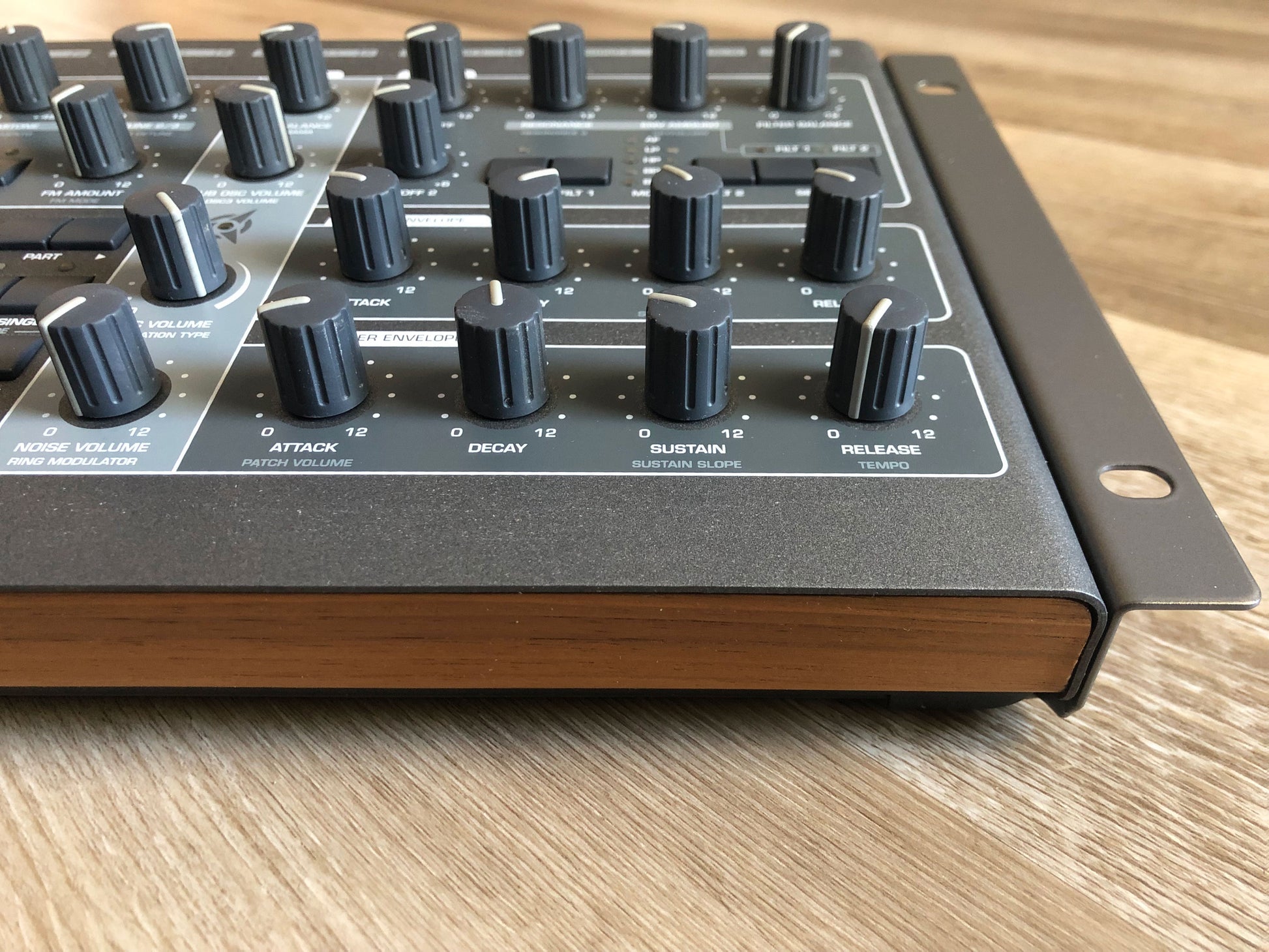 There are two very minor blemishes we could find. There is a small, hard-to-see scratch just below the C in Access on the faceplate (see photo 20). There is also a small shiny mark above the Resonance knob (see photo 21). There may be another very minor mark or two. Please examine the photos carefully, as we've done our best to capture the condition.