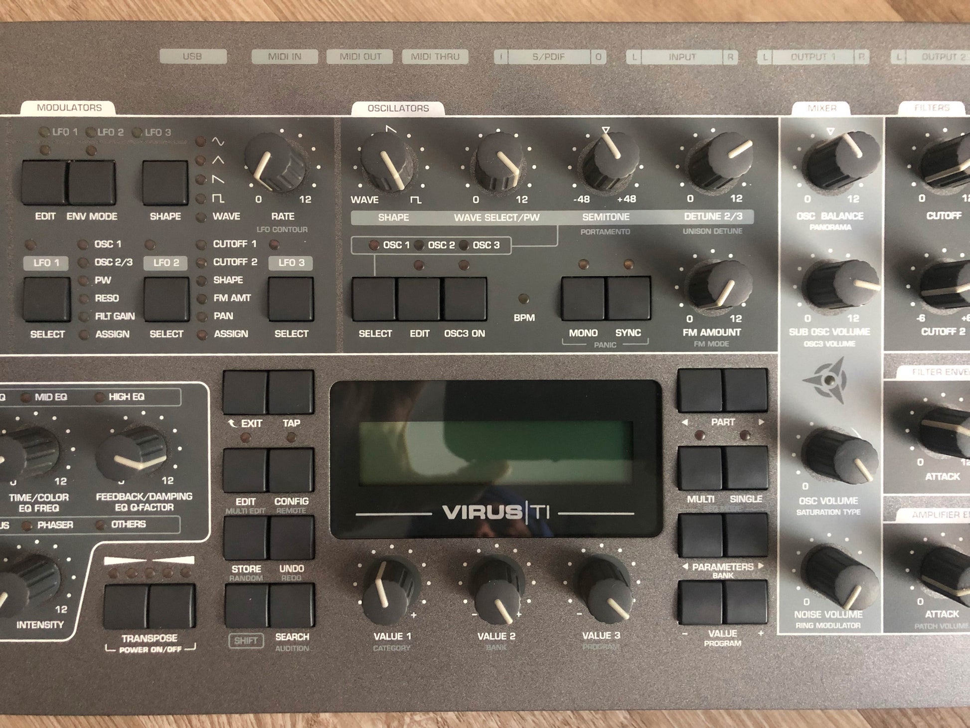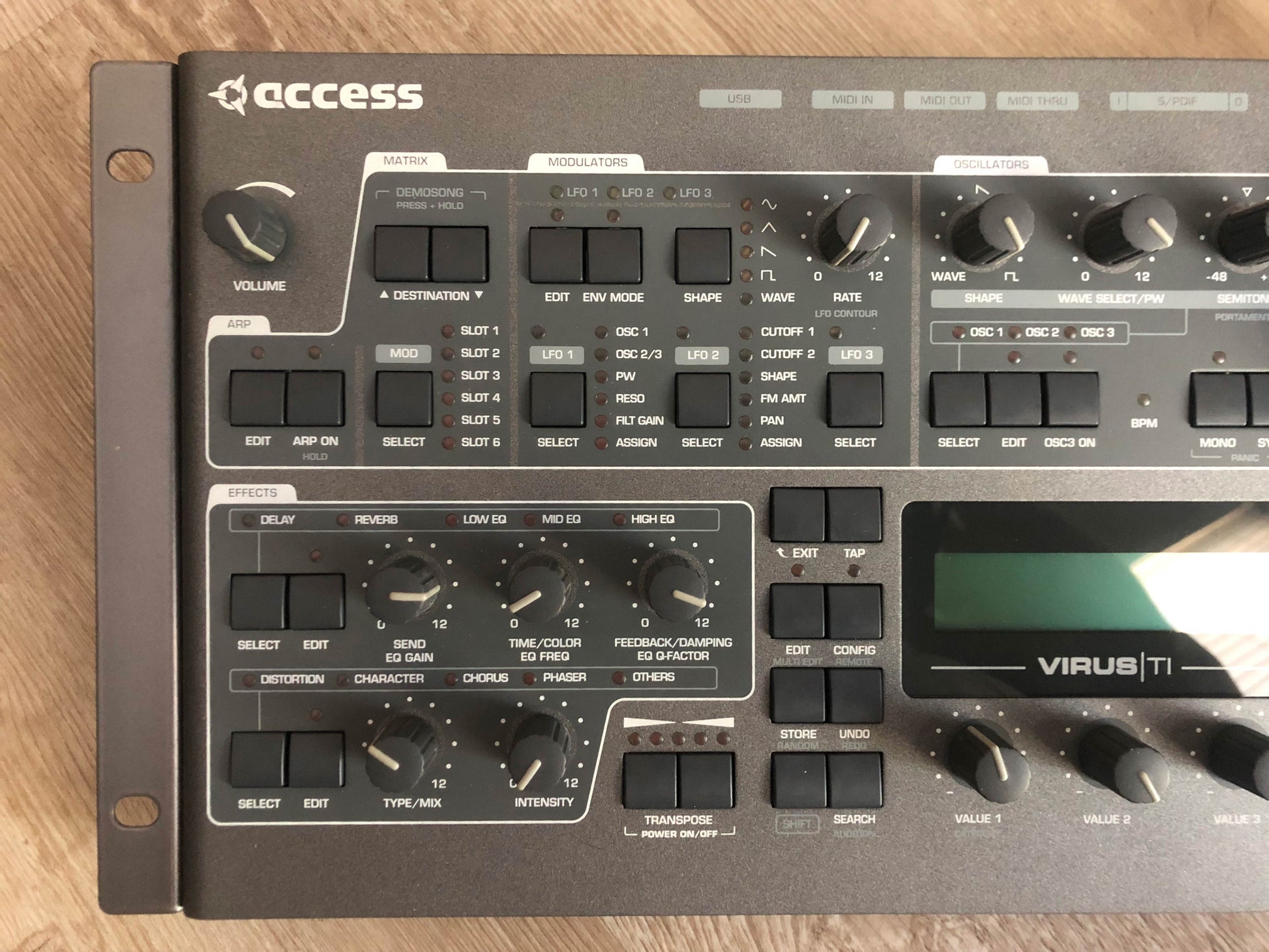 For sale: Access Virus TI2 Rack in minty condition. This unit is among the cleanest TI2s out there. It's almost mint, with only a few minor blemishes. Comes configured for rack use, but we are happy to switch to desktop mode at the buyer's request.