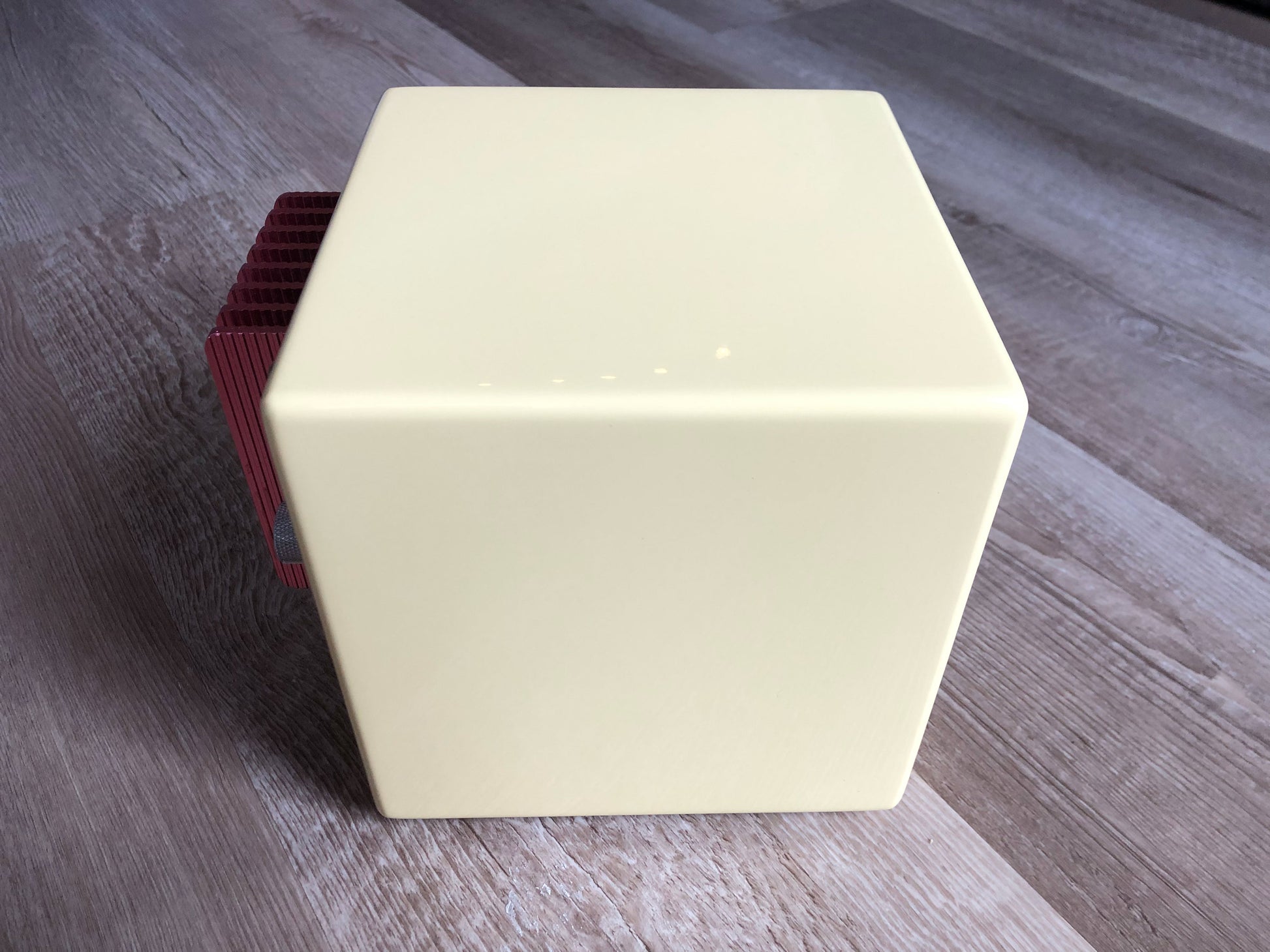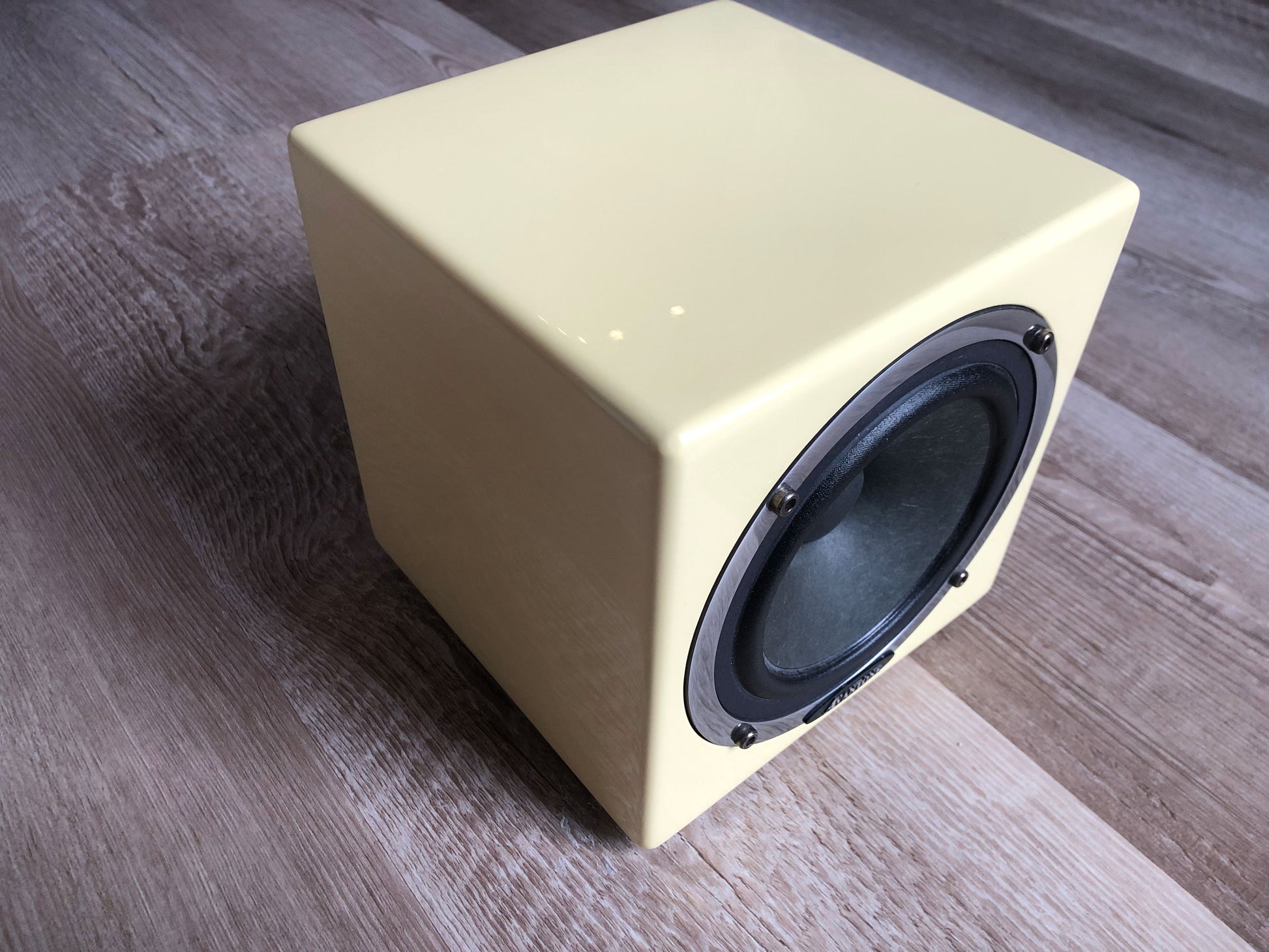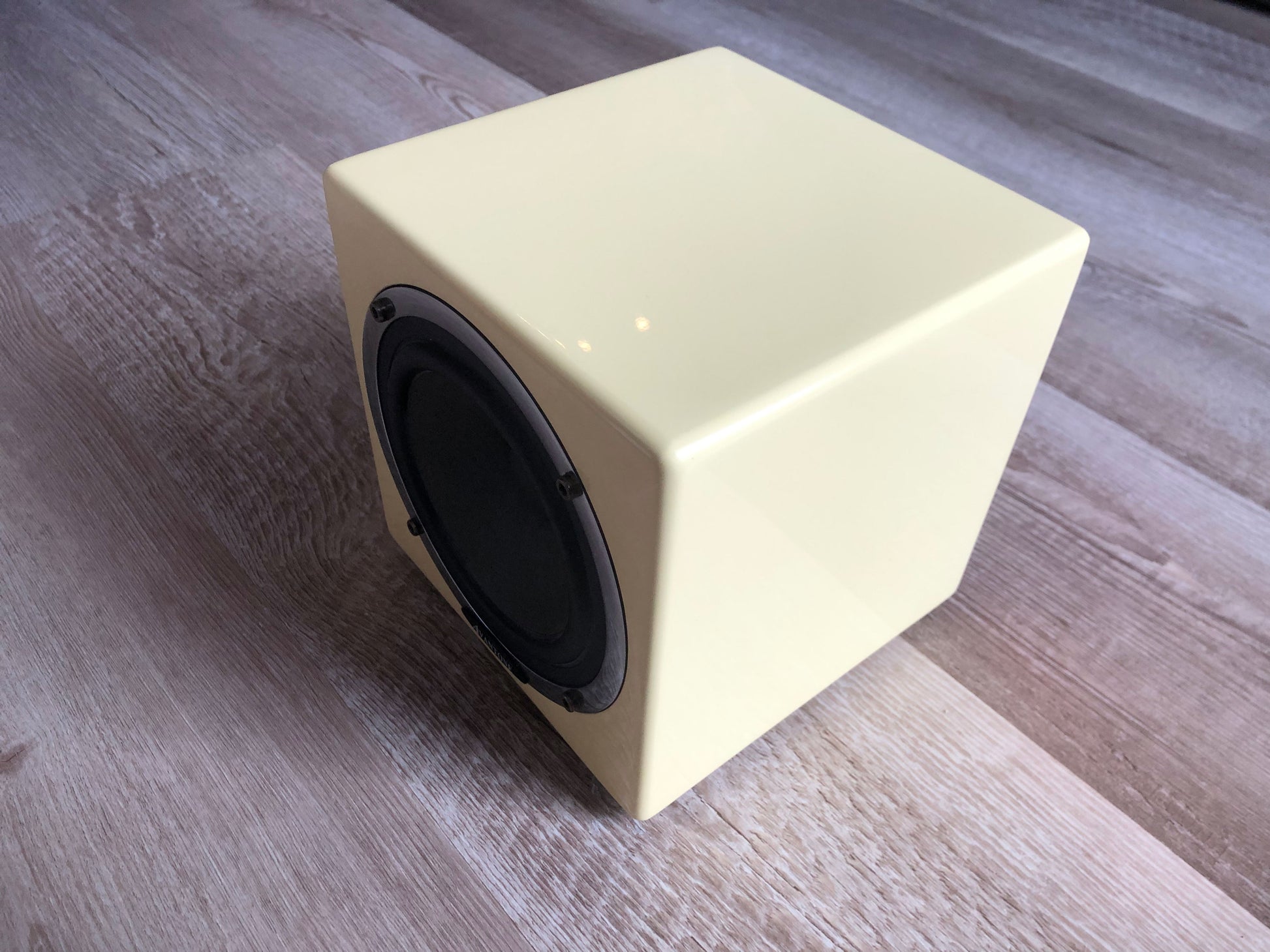 - Sealed acoustic suspension MDF with high-gloss Buttercream finish