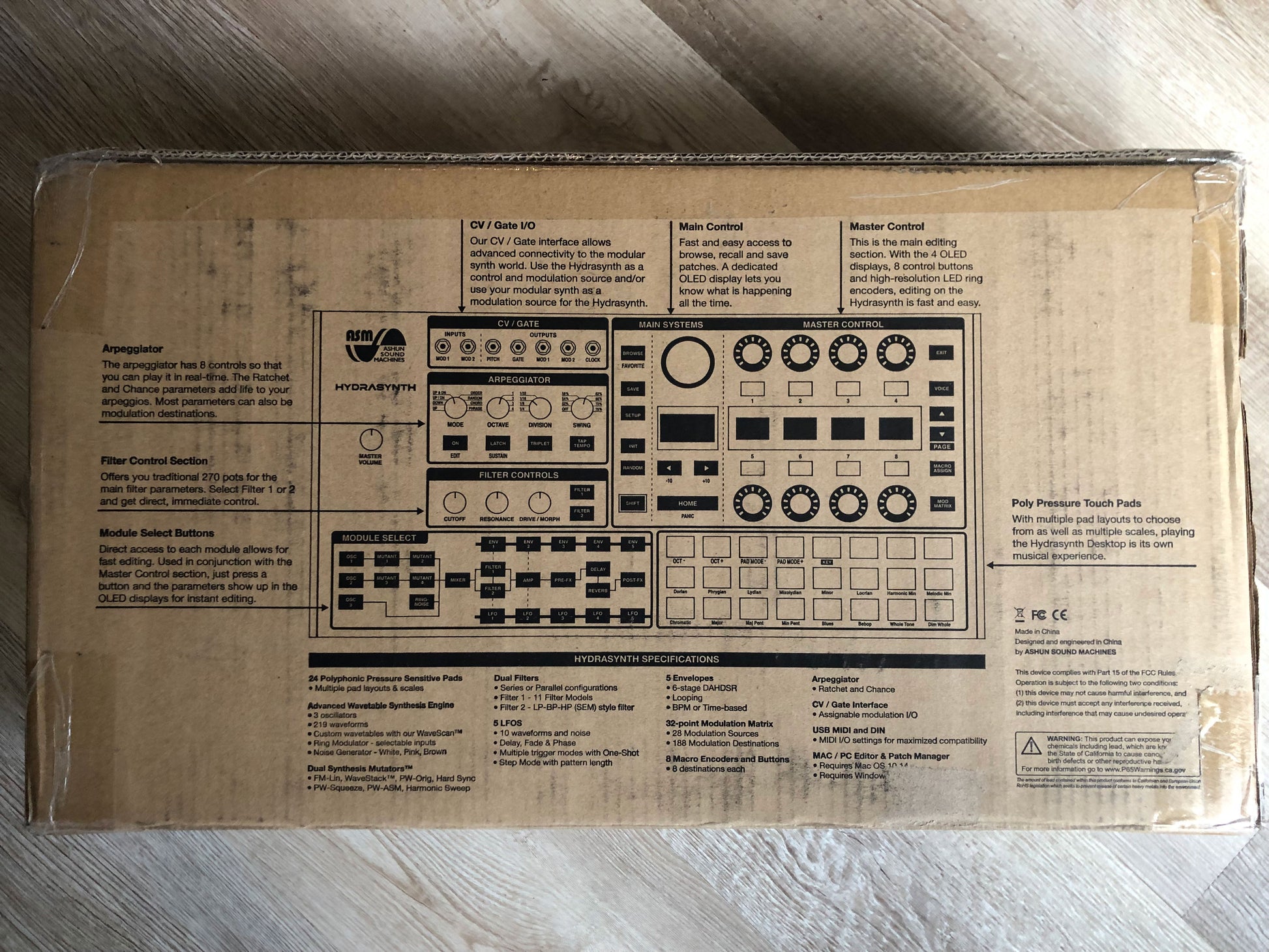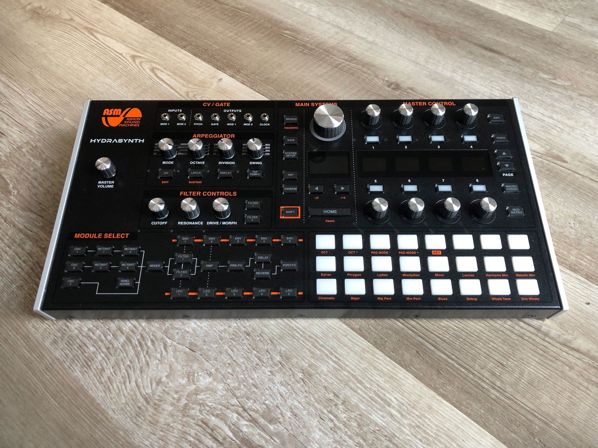 SOLD: Hydrasynth Desktop in excellent condition with new ASM power supply, rack ears, and the original box (but not the original packing). This unit is nice and clean, as shown in the photos. There are a few very minor marks on the sides. Please examine all photos carefully. We will supplement internal packing and double box to ensure this synth arrives as described.
