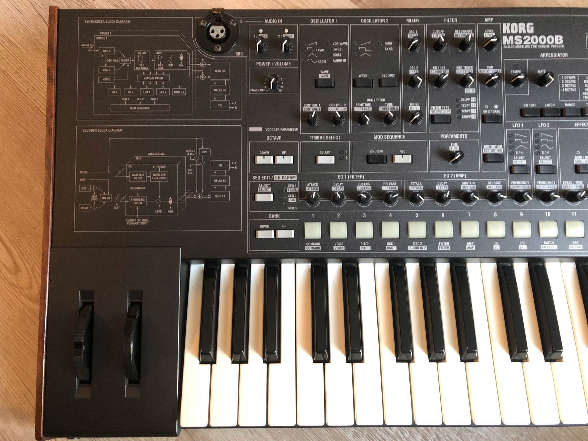 - Vocoder: 16-band vocoder usable via external audio input.